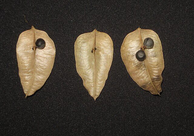 Le savonnier de Chine est un arbre ornemental très fréquemment planté dans les villes en France, issu de la famille des Sapindacées. Originaire de Chine (vous l’auriez deviné), il peut atteindre 10 mètres de hauteur au bout de 20 ans de croissance plutôt lente. Sa floraison jaune magnifique de fin de printemps lui donne des allures exotiques. Ces fleurs sont suivies de belles capsules vertes claires qui virent au brun à l’automne et qui vaut à cet arbre le surnom « d’arbre aux lanternes ».