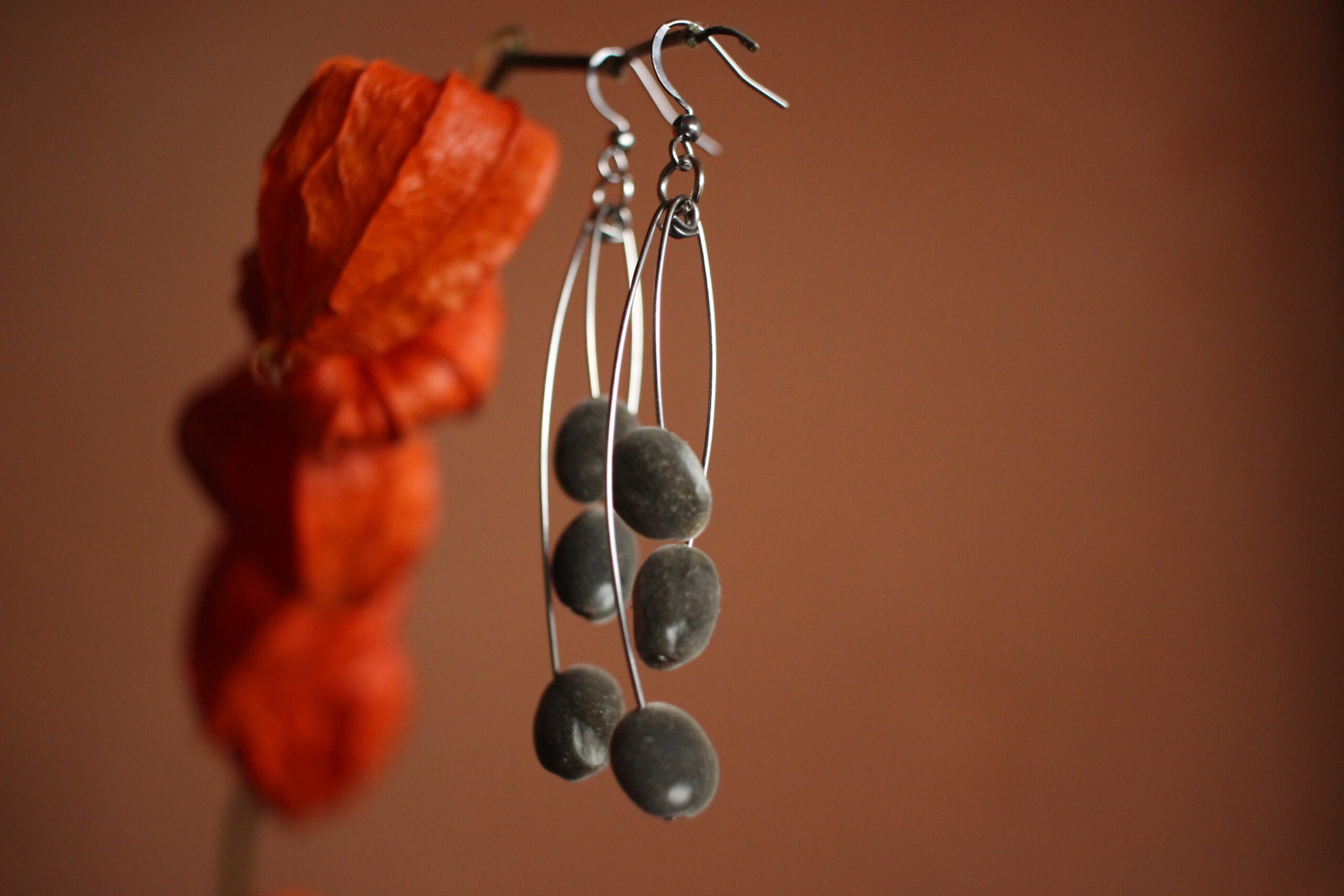 Paire de boucles d’oreilles en graines de Zanzibar.