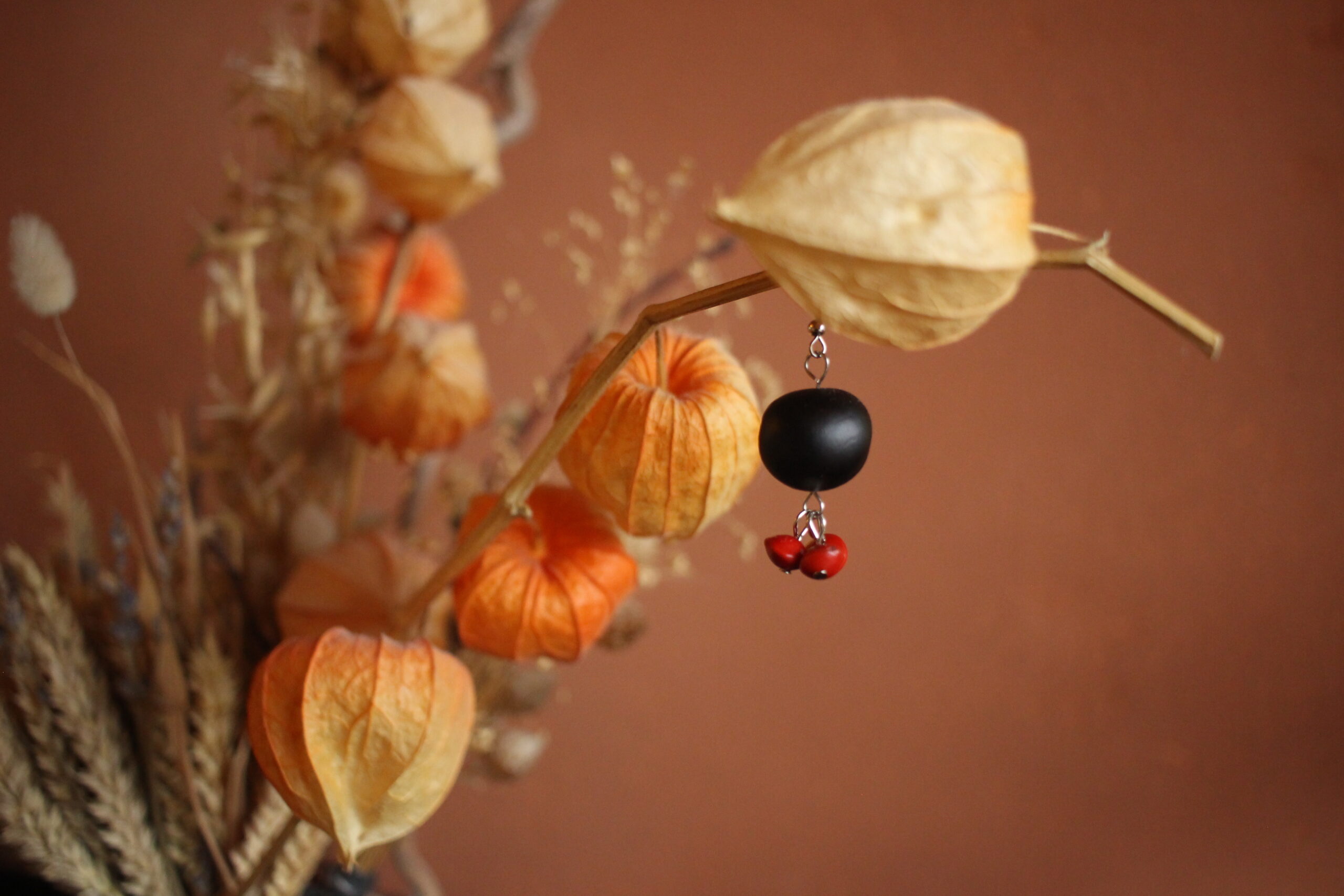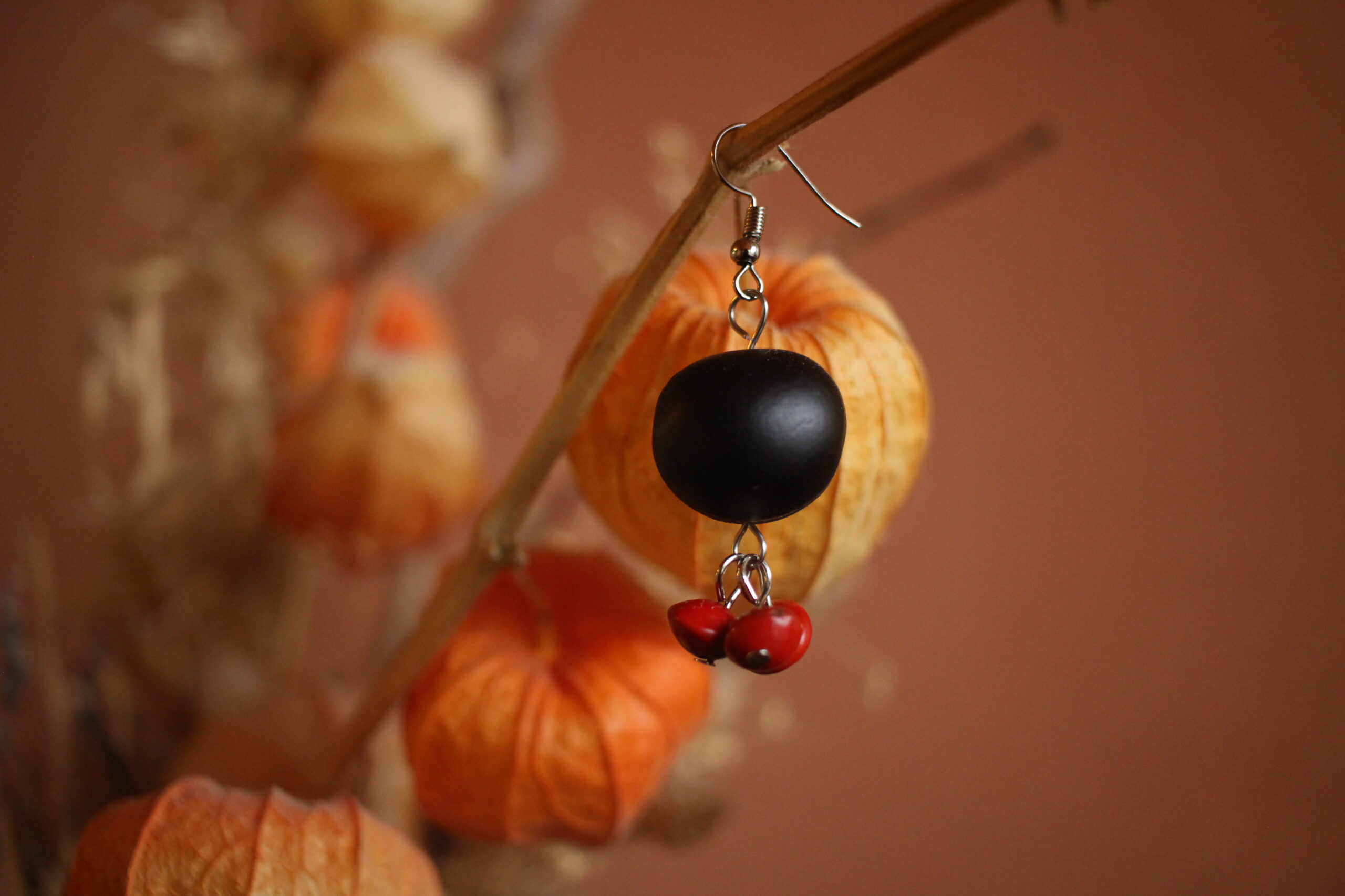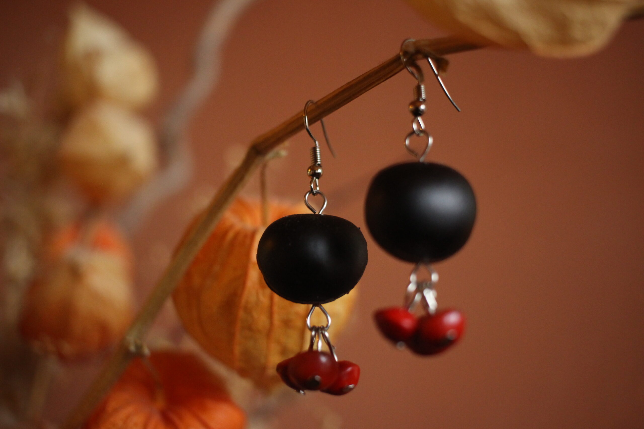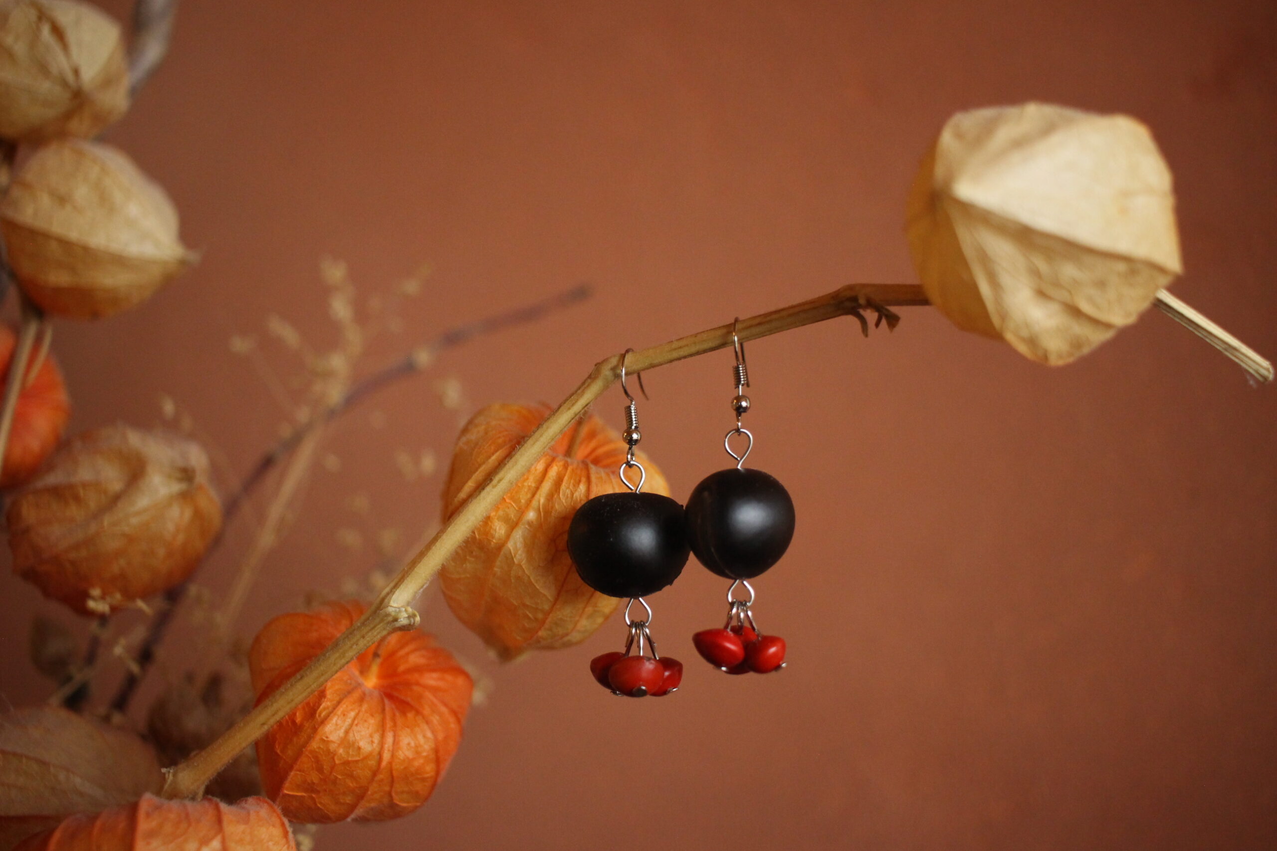 Boucles d’oreilles M’tso et graines rouges